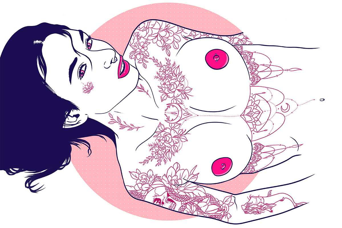 Ilustraciones de los relatos Adoradores del falo, Gatillazo y Sesión fotográfica