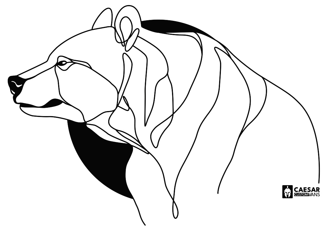 Diseñado para ser instalado en vinilo de plotter de corte de alta duración sobre los laterales de la furgoneta, este vinilo con la figura de un oso ilustrada de forma minimalista es mucho más que un simple elemento decorativo: es un símbolo de la naturaleza salvaje y de la libertad que caracteriza el espíritu camper.