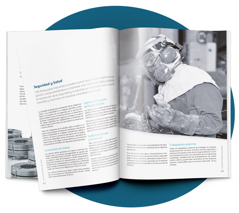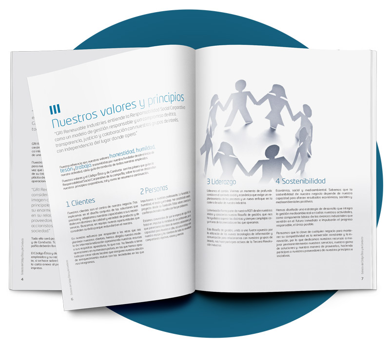 El diseño de la versión interna del Código Ético y de Conducta de Gonvarri Steel Industries, hoja de aceptación y formulario de denuncia (en idiomas español, inglés, brasileño, portugués, polaco, ruso, turco, alemán e hindi) se basa en la utilización de tonos suaves degradados, un uso minimalista de imágenes a color, y la disposición del texto distribuido de tal manera que posibilite amplios espacios vacíos que permitan respirar al diseño.