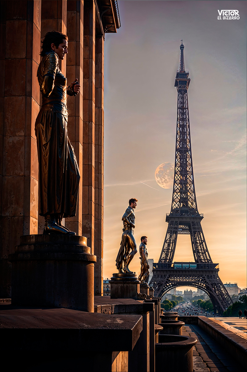 De una fotografía a una escena futurista de la Torre Eiffel.