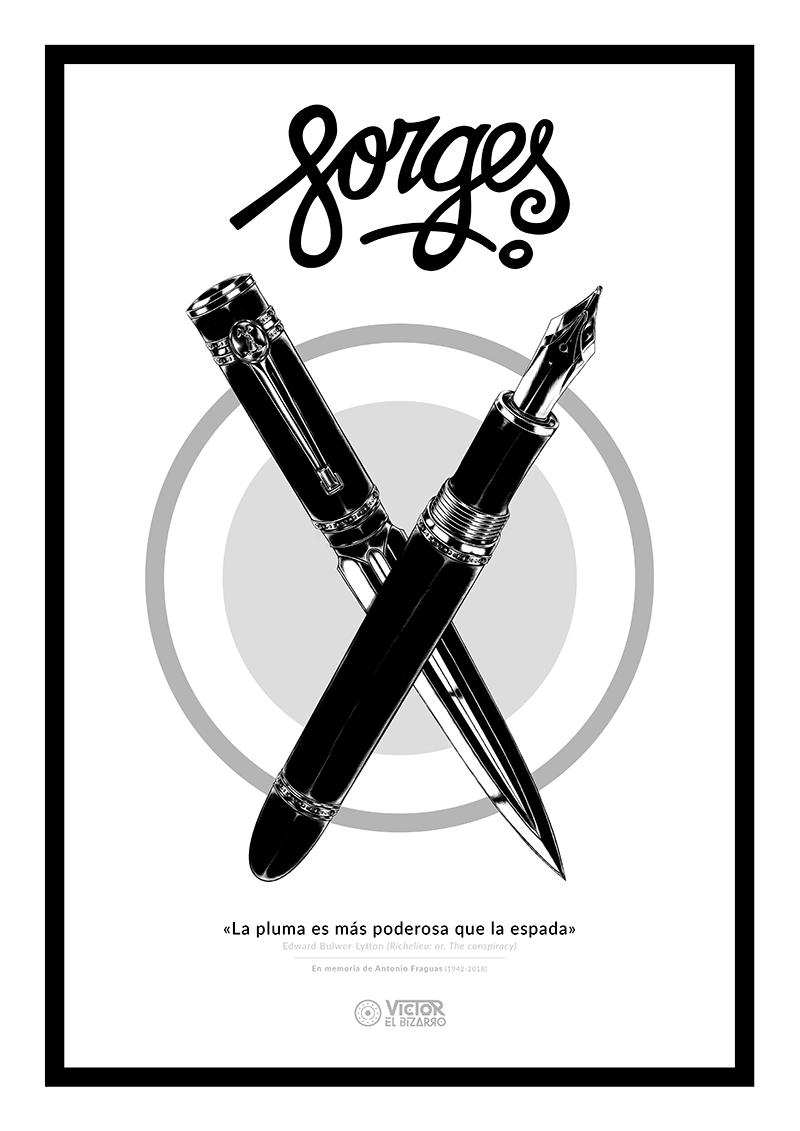La ilustración se basa en el lema “la pluma es más poderosa que la espada”* realizando hincapié en la opinión directa y sincera del humorista gráfico Forges, a través de la representación de una pluma y su tapa convertida en la empuñadura de una afilada daga.A su vez, la ilustración incluye algunos guiños como es el personaje de su última viñeta grabado en la tapa de la pluma, lo que la da identidad propia (no hay duda, es la pluma de Forges).