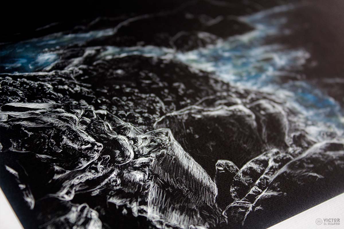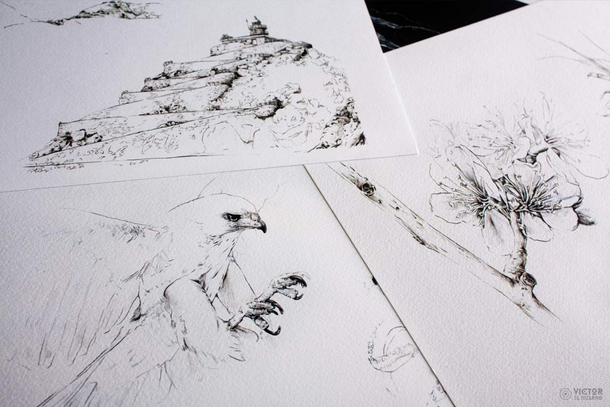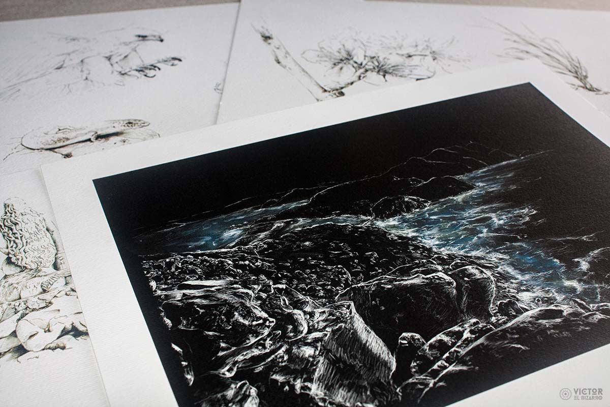 La ilustración de portada ha sido realizada directamente sobre una superficie negra, dibujando sólo los contornos de las zonas iluminadas para crear volumen. El resto de ilustraciones están formadas por contornos de diferentes colores (complementarios) según la sección en la que aparecen (dependiendo del apartado, texto e ilustraciones siguen un patrón de color) que, en combinación con el papel metalizado del folleto, crean sutiles y bellos reflejos.