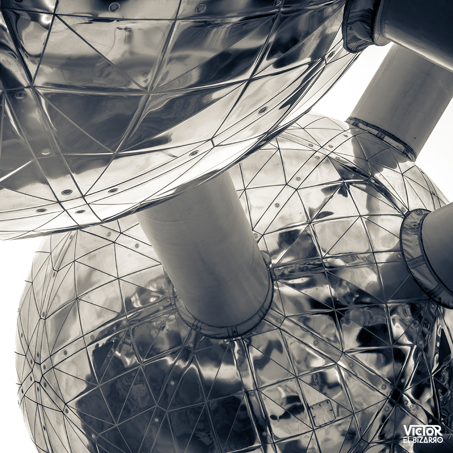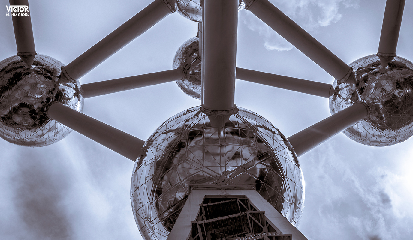Diseñado por André Waterkeyn, con un total de nueve esferas de acero de 18 metros de diámetro conectadas entre sí y una altura total de 103 metros, representa un cristal de hierro ampliado 165 mil millones de veces mediante una estructura arquitectónica erigida en el parque de Heysel.