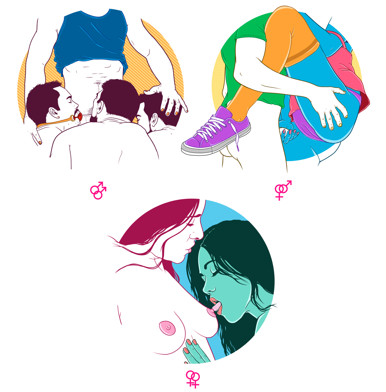 Ilustraciones de los relatos Adoradores del falo, Gatillazo y Sesión fotográfica