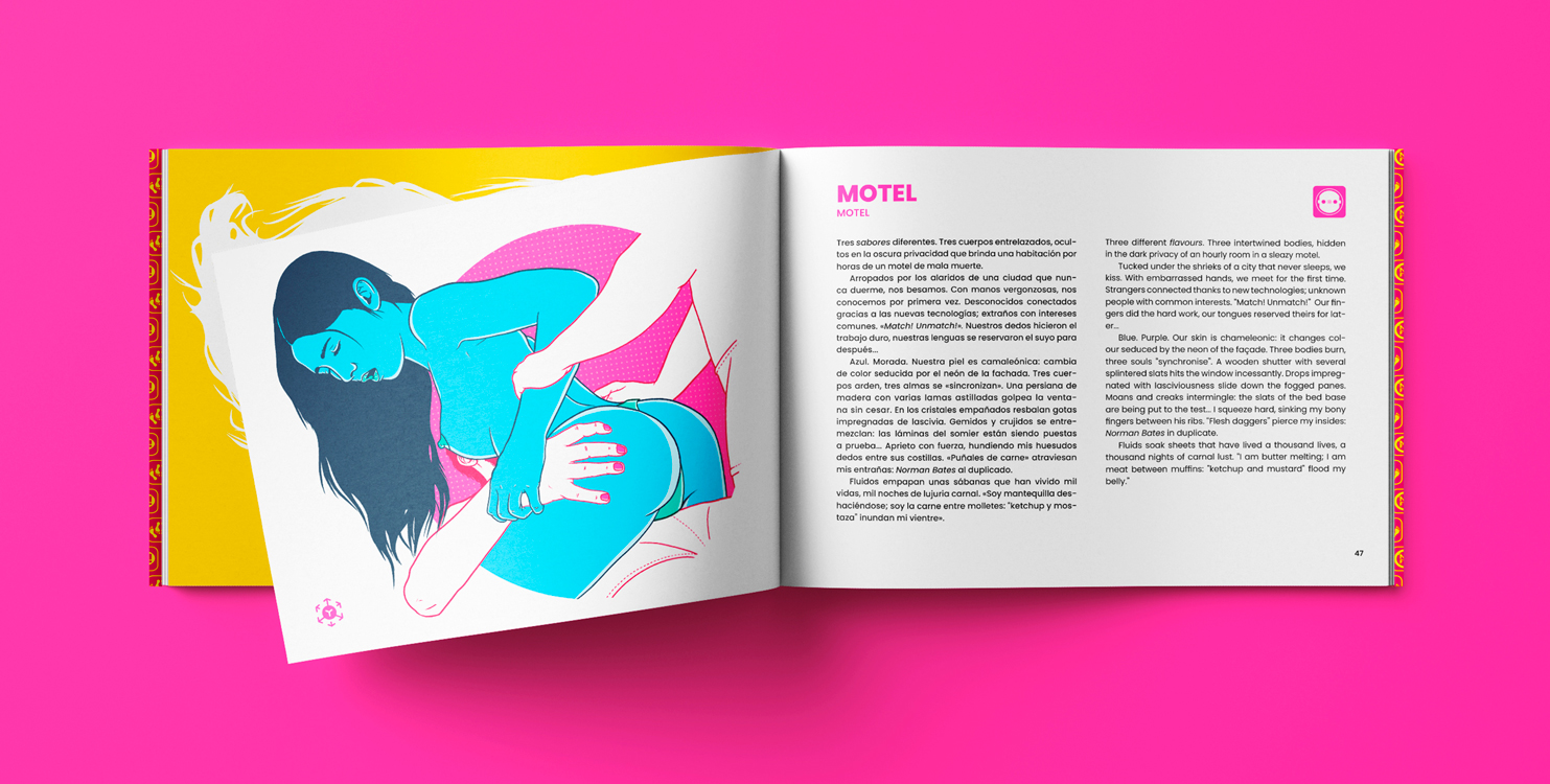 Súcubos, arneses, teriántropos, tríos en moteles de mala muerte, revólveres, apóstatas, bufés, avatares, lluvias doradas... Incluso Hänsel y Gretel tienen cabida en unos relatos que emanan el sutil aroma de la sensualidad y, aderezados con una pizca de sarcasmo; marinados en el característico toque bizarre de su autor, esperan a ser descubiertos… ¡Date un festín!