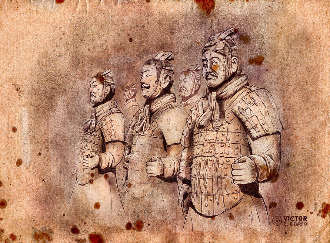 Considerado uno de los mayores hallazgos arqueológicos del siglo XX y declarado Patrimonio de la Humanidad por la Unesco en 1984, los Guerreros de terracota constituyen una colección arqueológica de alrededor de 8000 figuras de arcilla a tamaño real (1,80 metros de altura media), que forman parte de un ejército creado para proteger y seguir después de la muerte al primer emperador de China Qin Shi Huang.